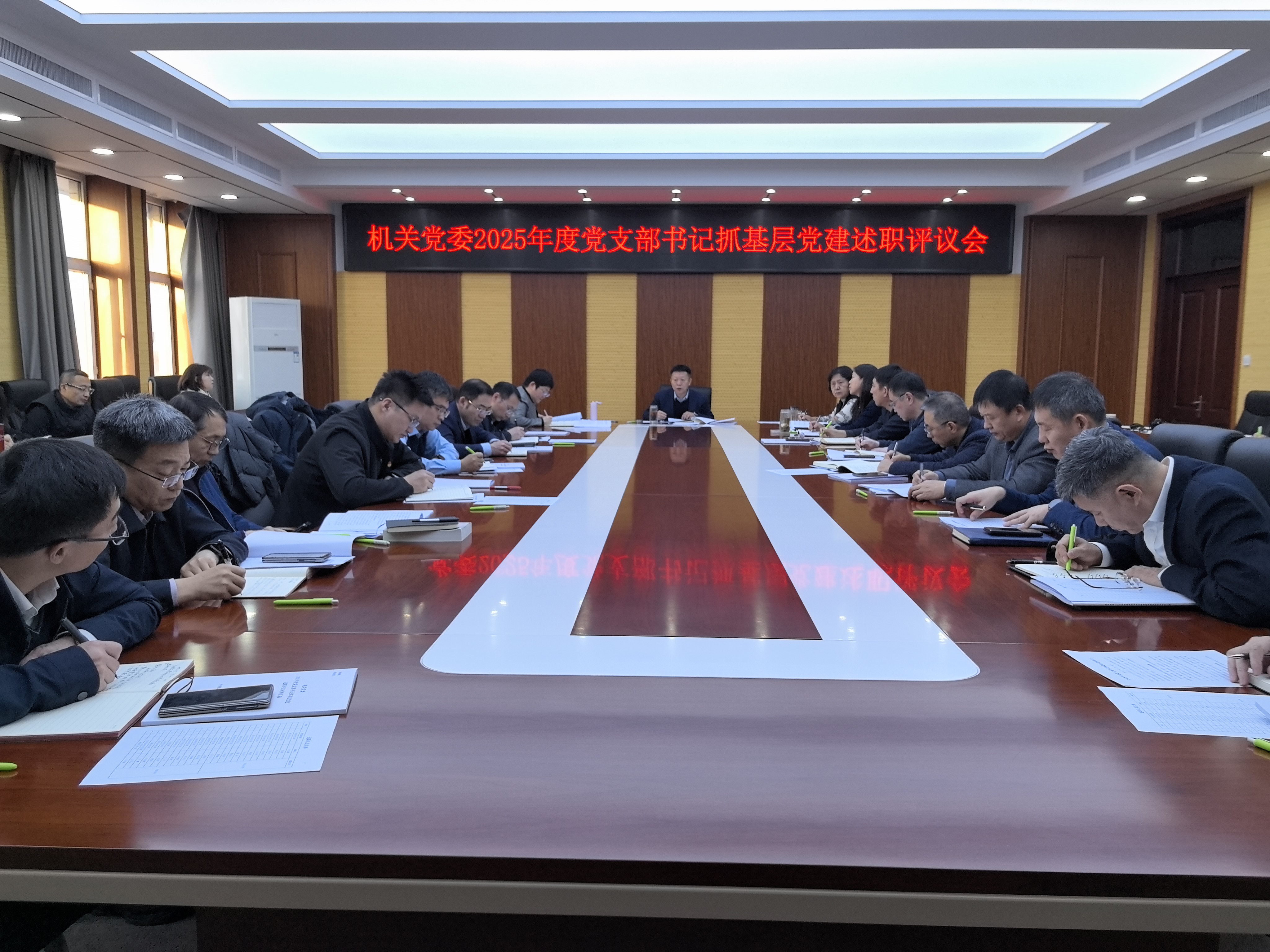 12月25日下午,机关党委在综合办公楼1008室召开2025年度党支部书记抓基层党建述职评议会。机关党委委员、纪委委员、党支部书记、正处级组织员,部分教代会代表、民主党派代表参加会议。学校党委副书记、机关党委书记翟雪峰主持会议。