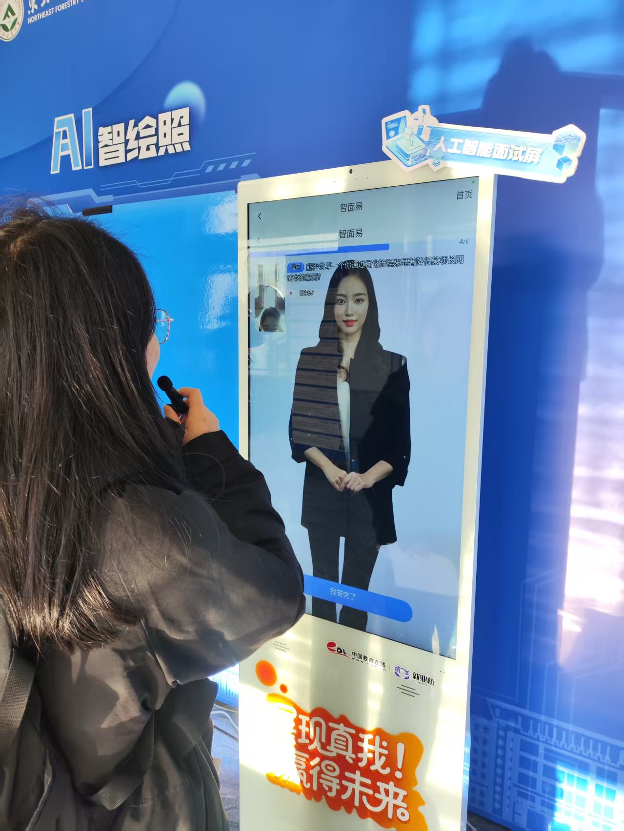 开诊时间正值中午学生午休时间,科学会堂入口处的“职业探索一体机”前人头攒动。AI咨询、生涯测评、学涯规划、职业探索……系统从心理、兴趣、性格等多维度为求职者生成个性化报告;沉浸式VR体验区更是吸引众多同学驻足,戴上VR眼镜,学生们便“走进”智能交通工地、新能源实验室等场景,直观感受目标岗位的工作环境;便捷操作的“AI简历打印一体机”,学生扫码,便可生成一份符合“PAR法则”的“加强”简历;人工智能面试屏前,学生选择自己的兴趣职业,机器自动生成问题,并有一个数字面试官开启线上面试。