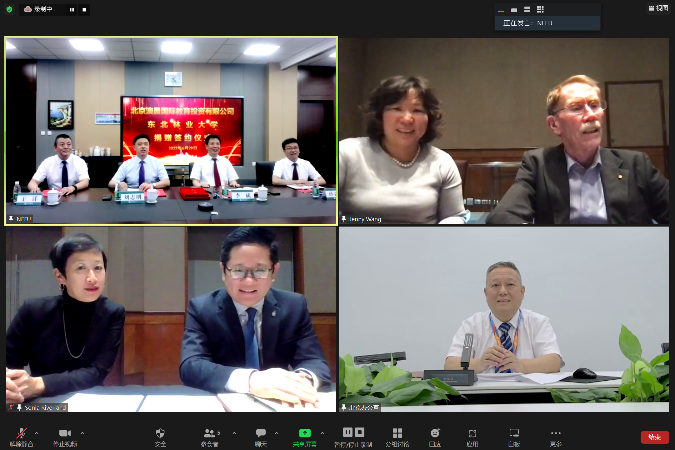 最后,校长李斌与总裁李新庆线上签署了捐赠协议,双方合影留念。
