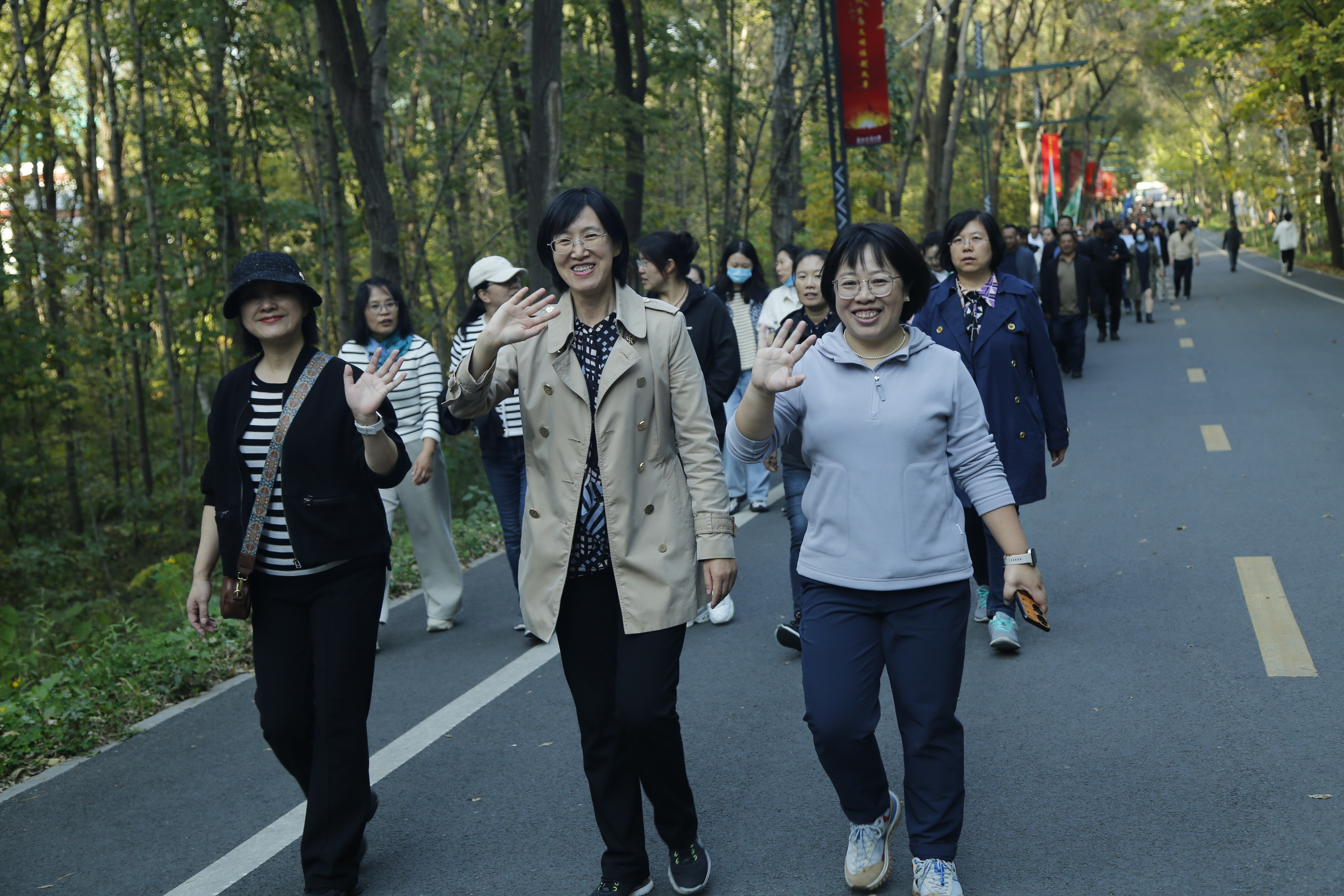 10月9日下午,学校举行一年一度的教职工秋季徒步行活动。学校24个基层工会的1500余名教职工放下手中繁忙的工作,走出办公室、教学楼,用一次畅快的徒步健身活动庆祝中华人民共和国成立75周年。在家的7位校领导一起参加了本次徒步行活动。