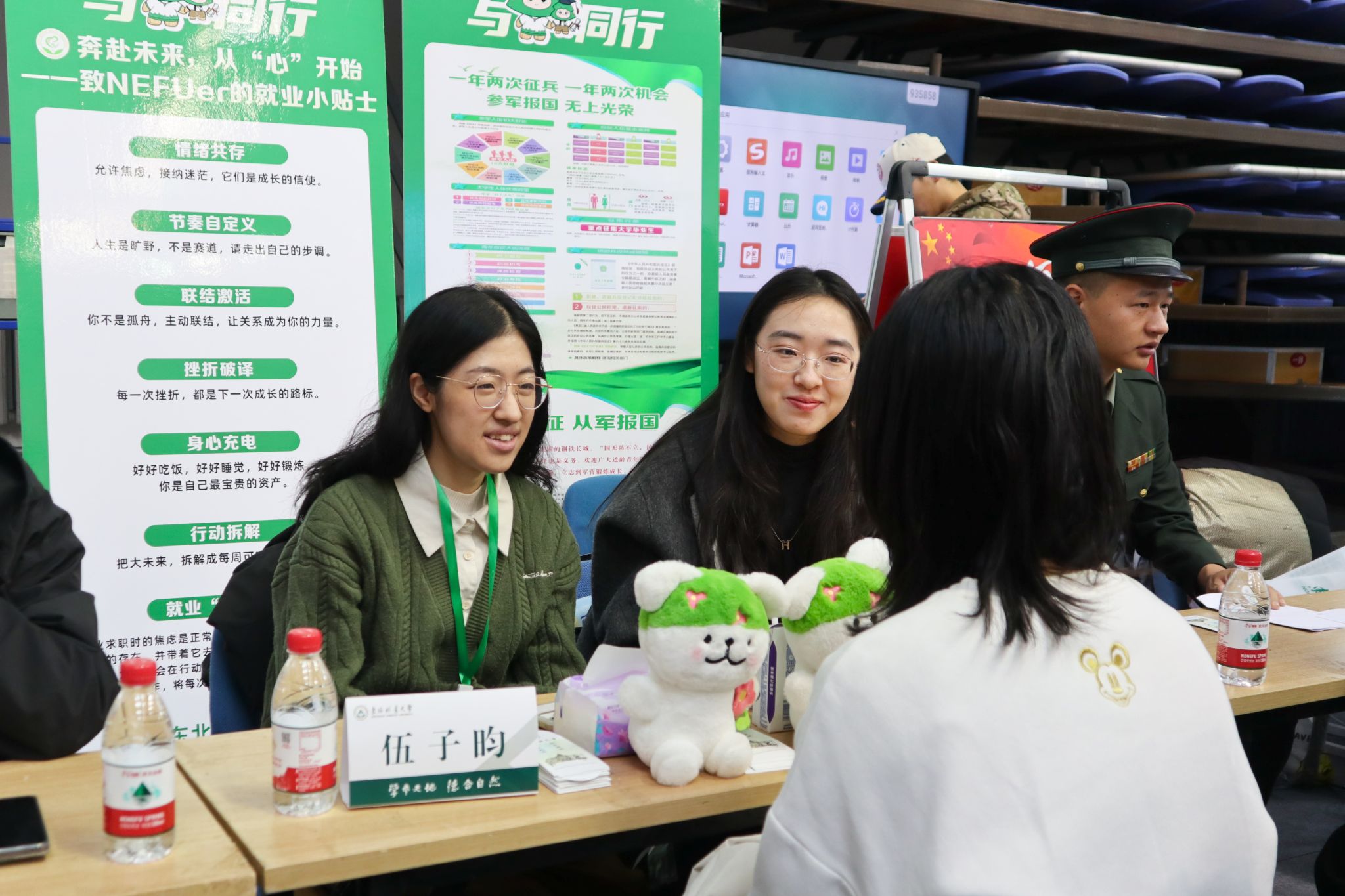 此外,为积极探索人工智能赋能高校就业工作的方法路径,在今年的双选会现场,学校继续提供“与林同行”全方位特色就业指导服务,设置“政策导航区”“暖心助力区”“AI实战区”“赋能成长区”“Seesee摄影区”五大分区,开展“AI简历辅导”“AI面试体验”“AI求职”等数字化就业指导,提供“2+3”辅导员、“支林计划”专项、“研究生支教团”“大学生应征入伍”等专业政策咨询以及证件照拍摄、心理咨询、法律援助等特色就业服务,构建“智慧诊断—专家剖析—精准推荐—心理支持—政策赋能”的全链条就业指导服务体系,提供“指导—求职—服务”毕业生就业一站式解决方案,为东林毕业生高质量充分就业保驾护航!