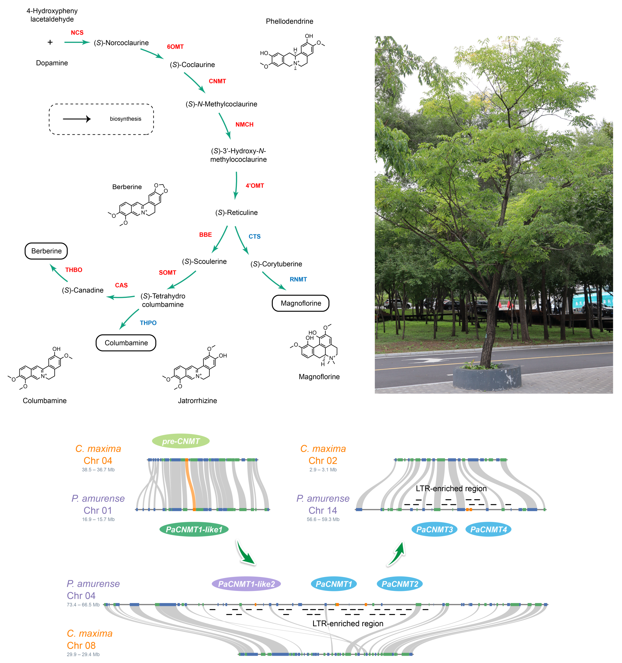我校科研团队破解“三大硬阔”黄檗古八倍体基因组,揭示转座子驱动黄连素合成途径进化机制