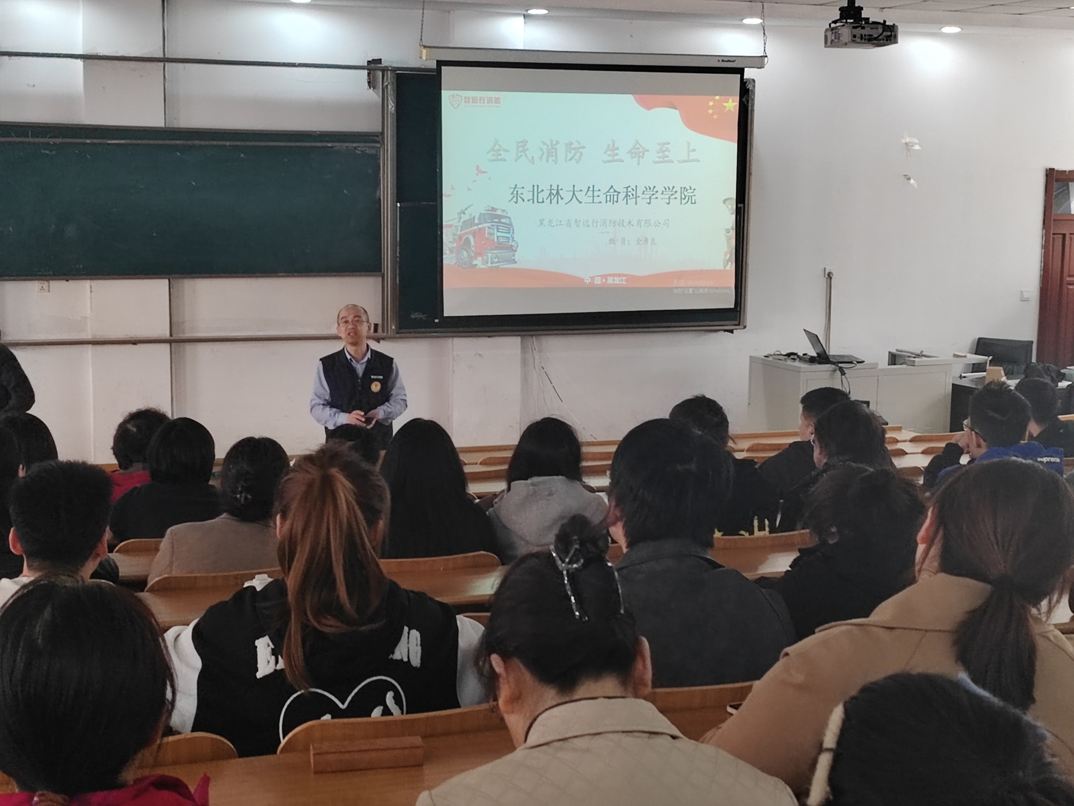 随后,黑龙江智远行消防安全专家金彦良为师生带来了一场生动的消防安全知识讲座。结合高校实验室特点,金彦良老师系统讲解了火灾成因、预防措施、灭火器使用方法及火场逃生技巧,并通过真实案例剖析火灾隐患的严重性。培训结束后,学院在逸夫教学楼1-7楼开展疏散逃生演练。模拟场景中,实验室突发火情,浓烟弥漫,逃生通道设置障碍物以增强真实感。随着消防警报响起,师生迅速反应,用湿毛巾捂住口鼻,沿安全通道低姿撤离。应急小组成员各司其职,引导人员有序疏散。全体参演师生在5分钟内安全撤离至指定集合点,演练过程紧张有序,充分检验了应急预案的可行性。