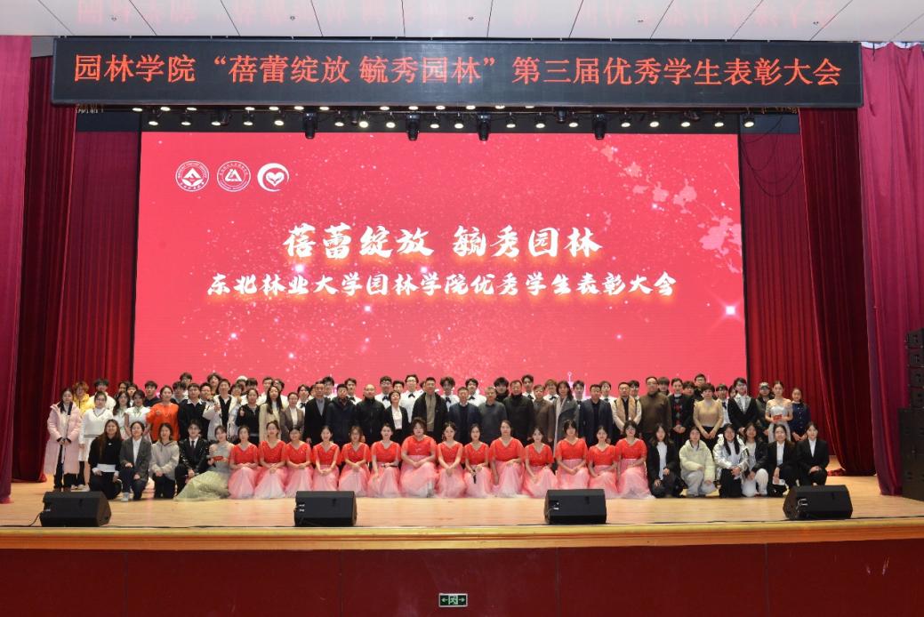 12月16日晚,园林学院第三届“蓓蕾绽放,毓秀园林”优秀学生表彰大会在科学会堂举行。学校党委副书记翟雪峰,校友工作办公室主任姚远,离退休工作处处长李长松,党委学工部副部长、学生处副处长张磊,园林学院党政领导班子、校友代表、师生代表等共同参加了本次表彰大会。