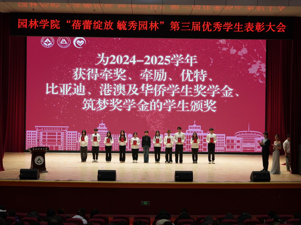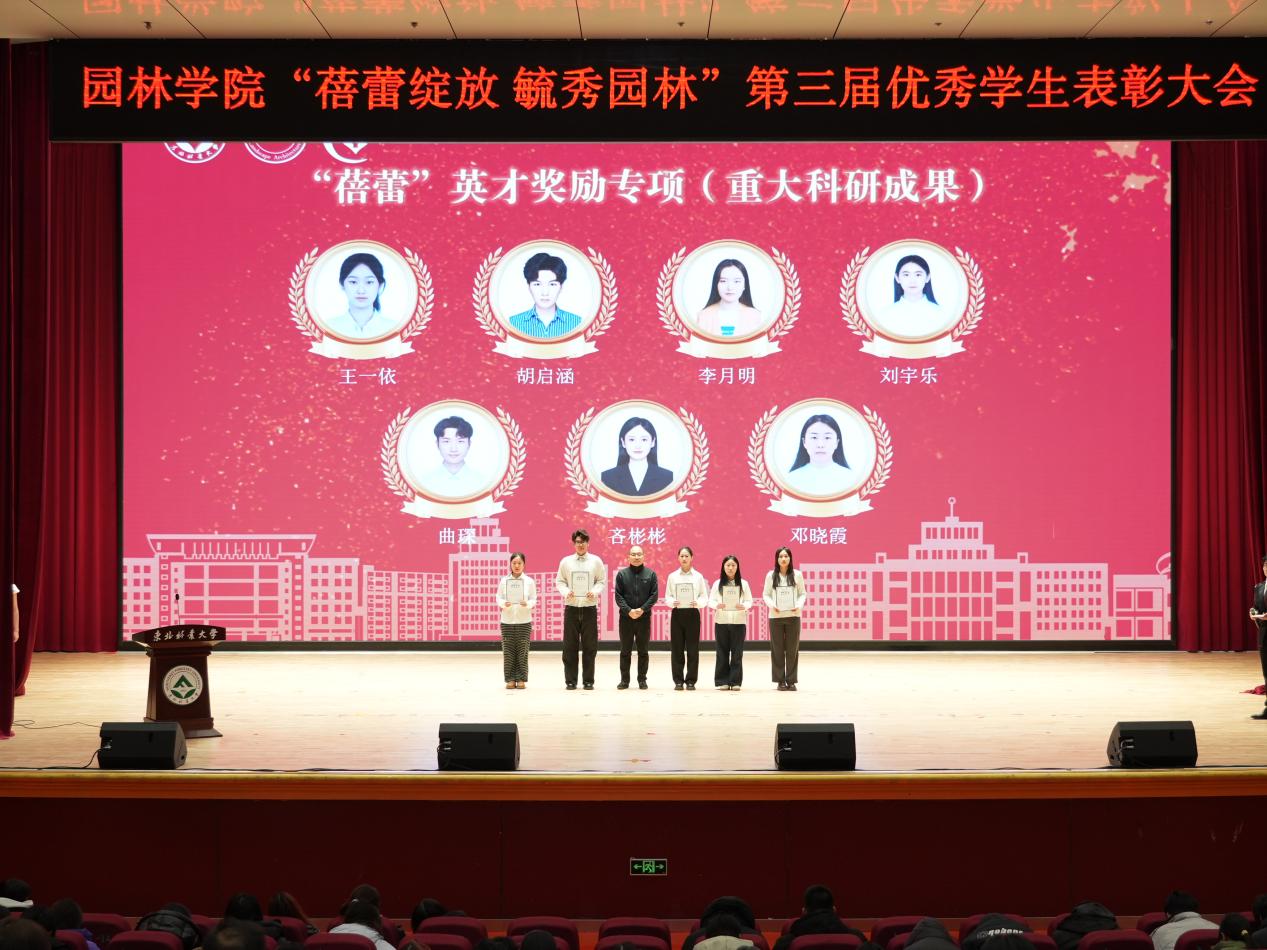 学校党委副书记翟雪峰向获奖学生表示了热烈的祝贺,向园林学院的学生们提出四点希望:一是筑牢理想根基,深植家国担当;二是勤勉深耕学业,练就过硬本领;三是增强创新意识,追求卓越品质;四是涵养品德修养,恪守立身之本。他强调,同学们只有把荣誉化为动力,把理想付诸行动,才能为推进中国式现代化、实现中华民族伟大复兴作出更大贡献。
