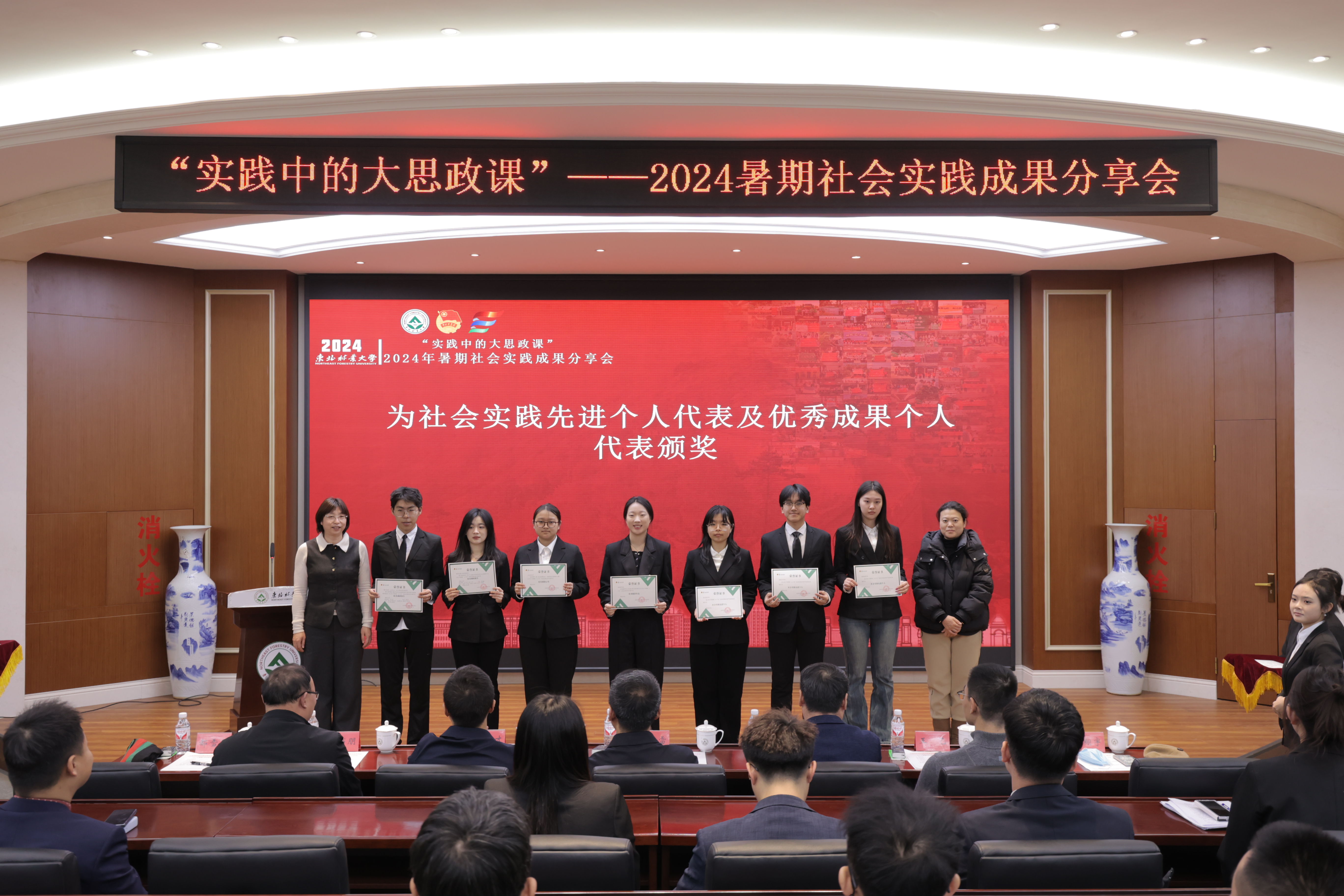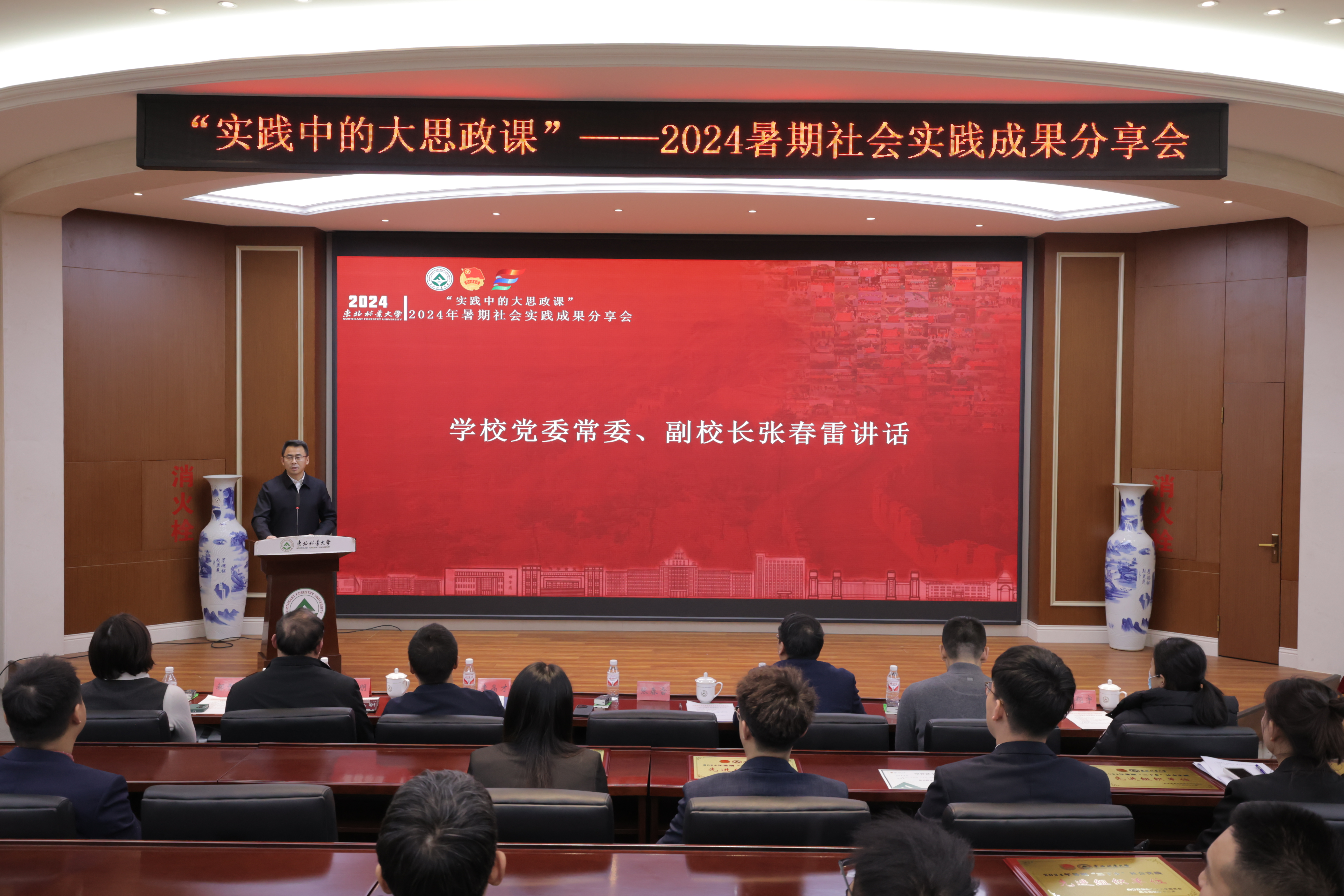 为深入学习贯彻习近平新时代中国特色社会主义思想,全面贯彻落实党的二十届三中全会精神和习近平总书记在全国教育大会上的重要讲话精神,推动“思政小课堂”同“社会大课堂”深度结合,共建“大思政”体系,2024年12月27日下午,学校在动保国际会议厅举行“实践中的大思政课”——2024年暑期社会实践成果分享会。学校党委常委、副校长张春雷,学校相关职能部门负责人,全校专兼挂职团干部与200余名青年师生一起同上一堂“大思政课”,推动思想铸魂与实践育人有机结合,有力推进“一二课堂”同向同行,让青春脉搏与新时代发展同频共振。
