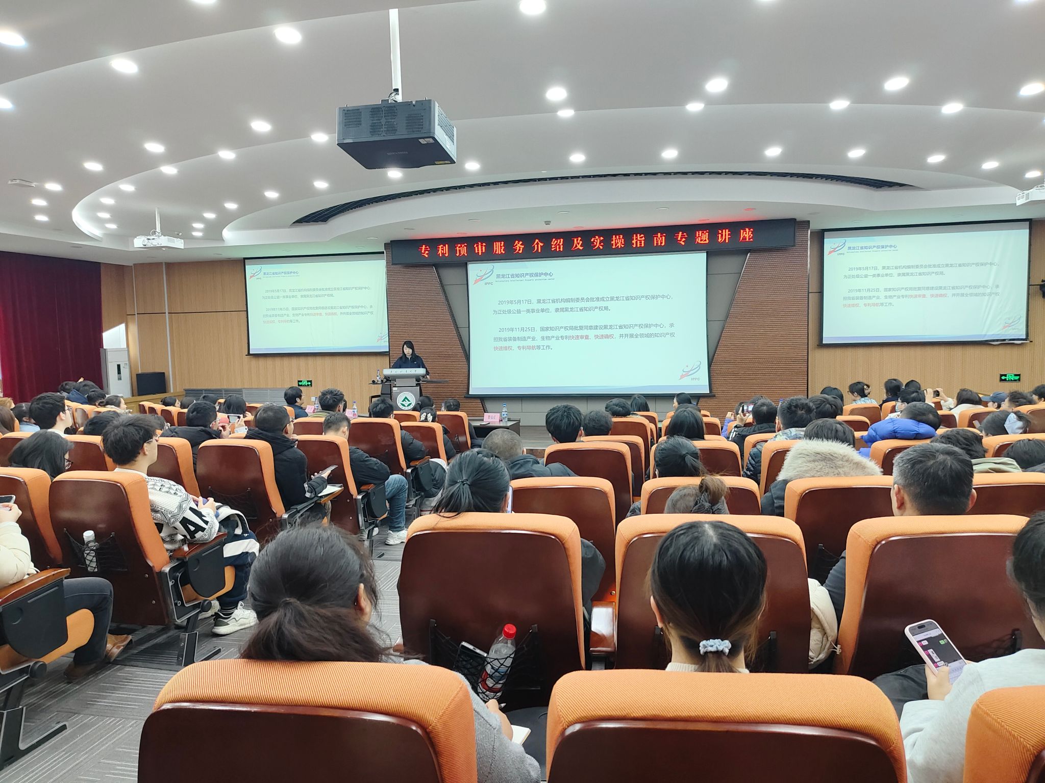 11月20日,我校科学技术研究院联合图书馆,邀请黑龙江省知识产权保护中心副主任曹福成,装备制造预审部部长陈丽华、副部长徐晶,生物预审部部长姜雯、副部长王志强,以及装备制造预审部预审员孙悦一行六人组成的专家团队,为我校师生开展专利预审专题培训与精准指导,强化师生知识产权意识,提升专利文件撰写质量,缩短专利审查周期,加快专利授权速度。近200名师生参加讲座,讲座由图书馆副馆长刘亚丽主持。