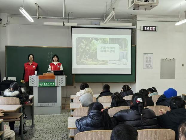 “同学们,你们知道松树冬天不落叶的秘密吗?”课堂上,志愿者们结合学校在森林生态、环境保护领域的学科优势,以及数理基础学科特色,为继红小学的孩子们带来了一堂堂“活起来”的数理生态文明课。从“森林的秘密”“身边的环保小行动”为引子,趣味案例接连不断——从“一片树叶的生态旅程”讲到“垃圾分类如何变废为宝”,动画短片里跳动的森林精灵、互动问答中举起的一只只小手,让知识不再枯燥。当志愿者提出“我的环保承诺”分组讨论时,孩子们立刻激烈地讨论起来,表达了从自己做起的环保小愿望,稚嫩的声音里满是坚定,生态保护的种子在热烈的交流中悄然扎根。