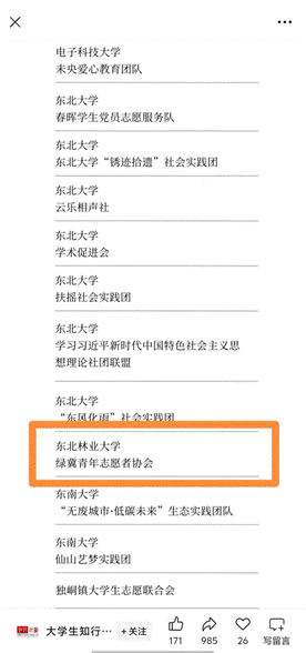 为发掘和表彰全国范围内表现卓越的大学生社团及团队,激励更多大学生积极投身于社会实践活动中,中国大学生知行促进计划和青年影响力创新中心联合发起“榜样100|全国优秀大学生社团及团队征集活动”。我院绿冀青年志愿者协会获评,同时绿冀志愿者们的故事激励着更多的大学生积极投身于社会实践,为社会的发展贡献自己的力量。