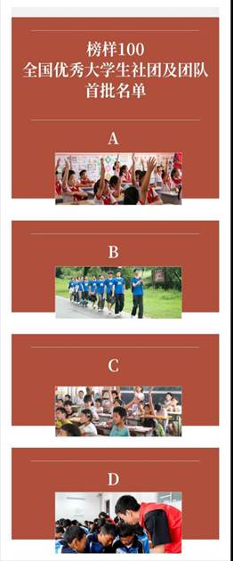 “榜样100”全国优秀大学生社团及团队活动涵盖乡村振兴、助学支教、专业赛事、环境保护、创新创业等多个领域,为大学生提供了广阔的实践舞台,使他们能够在实践中锻炼能力,增长才干。